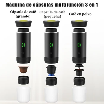 Cafetera Eléctrica Portátil de Cápsulas Cafetera Espresso Inalámbrica con Bomba Calentadora Cafetera de Viaje y Coche 3-en-1