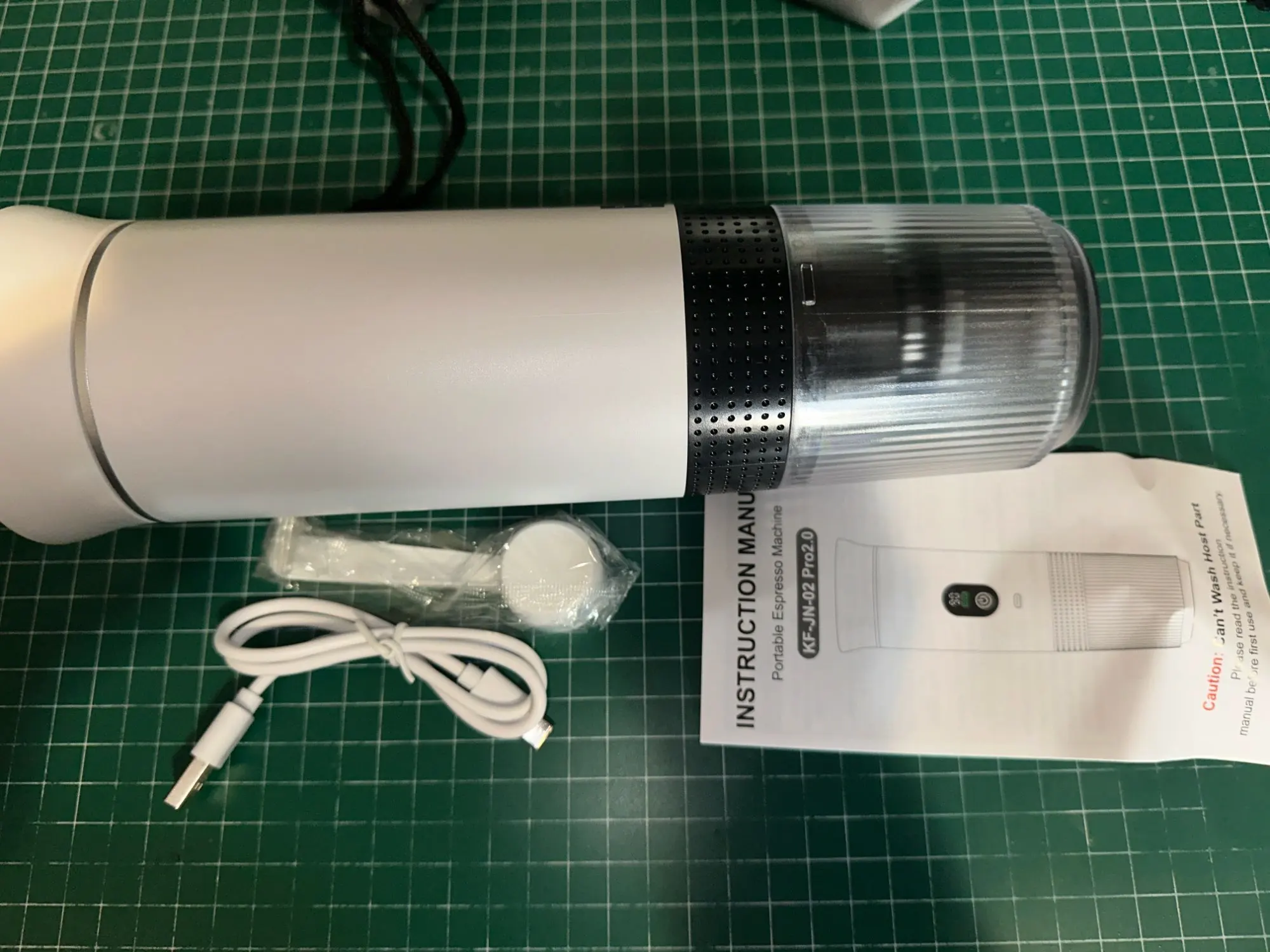 【El paquete incluye】Cuadro principal de la máquina de café + paquete de caja de color + cable USB + Manual + Cuchara de café + Bolsa de almacenamiento