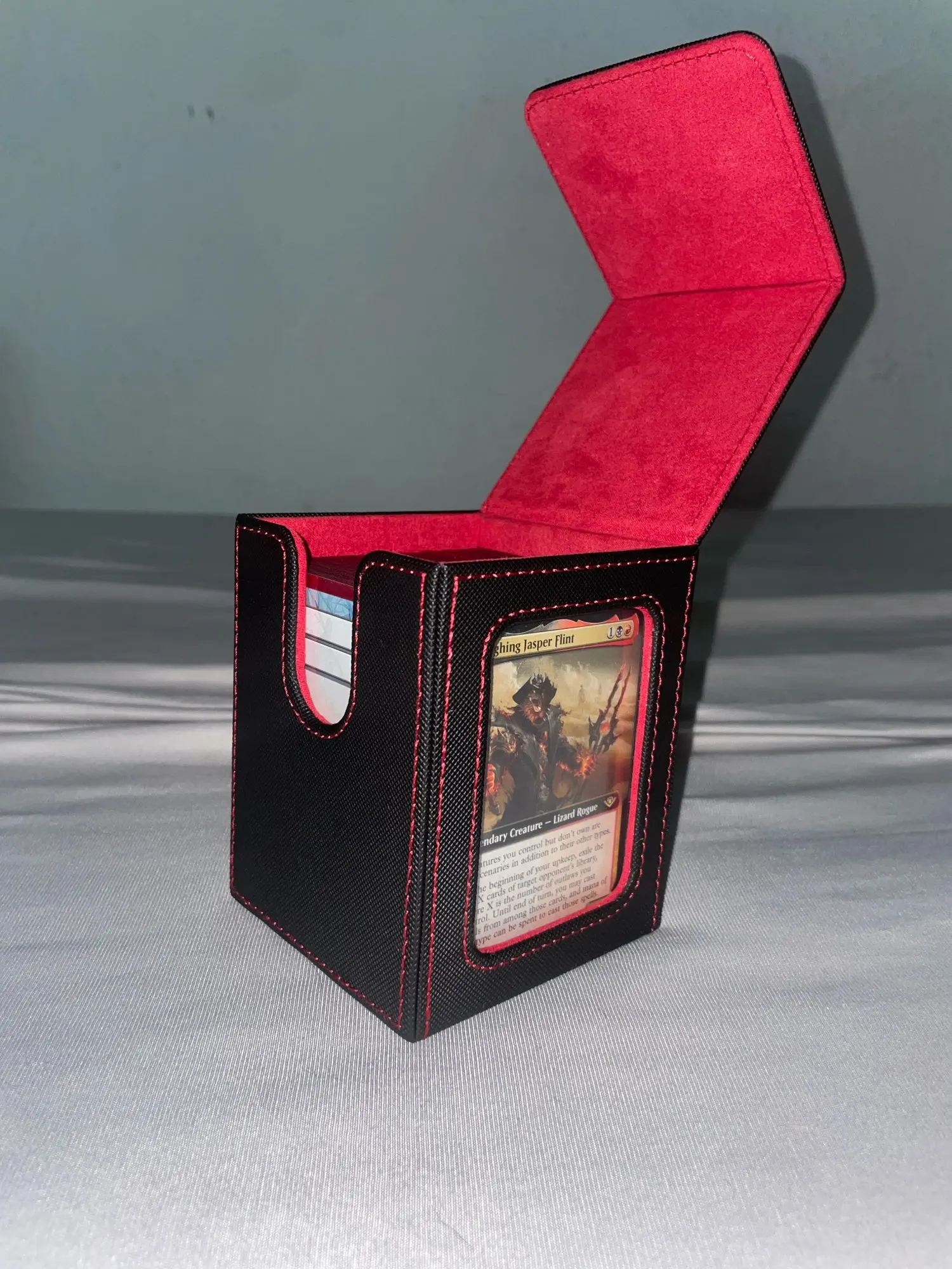 Caja de baraja de cartas con ventana de visualización, capacidad para 120 + tarjetas de una sola manga, cierre magnético, adecuada para tarjetas CCG, tarjetas de juego mágicas