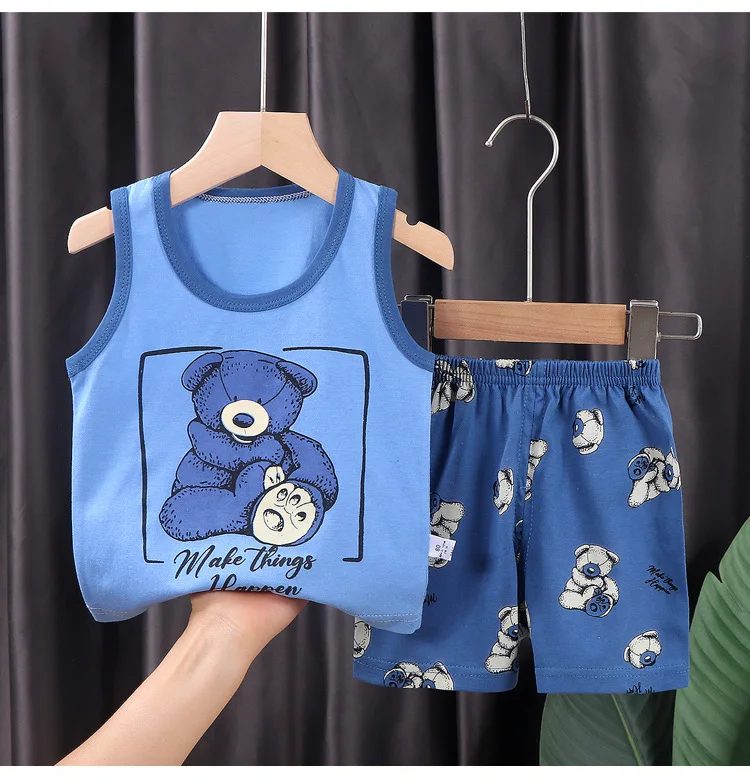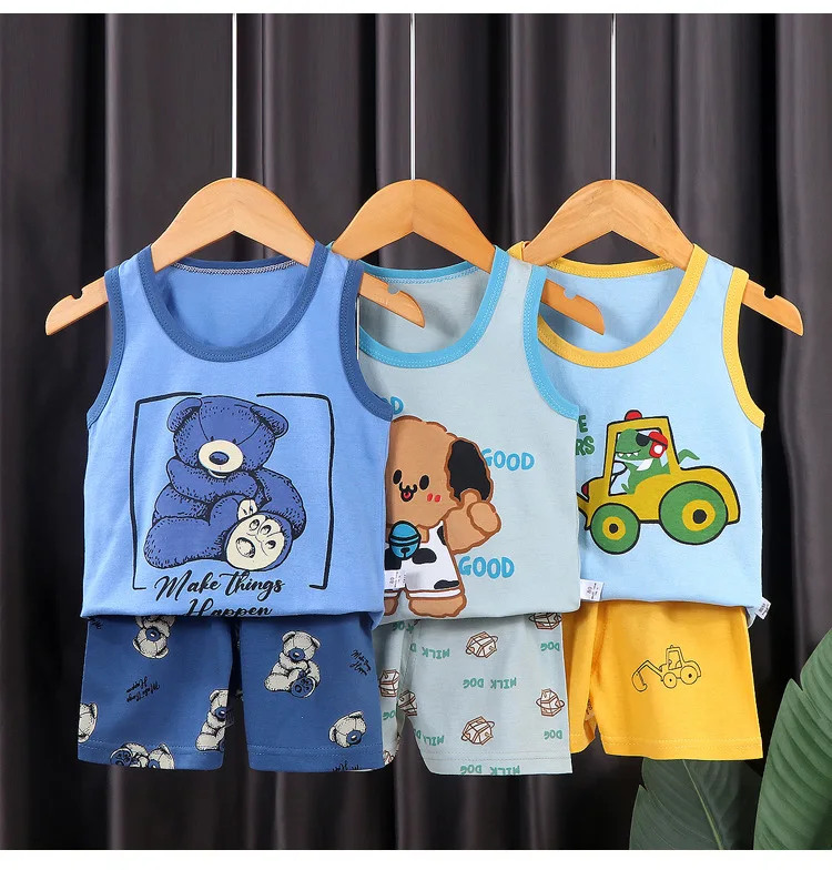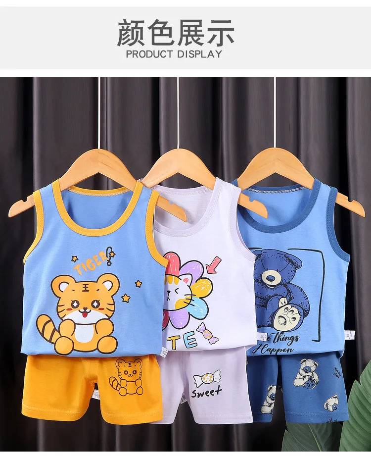 Conjunto de ropa para niños, chaleco para niño, traje de verano de algodón, nuevos pantalones cortos para niñas, ropa para bebés, traje sin mangas, ropa para chico