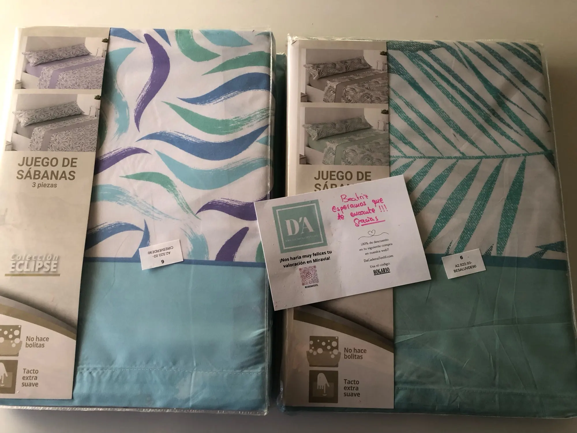 | Tipo de producto | Sábana ajustable, sábana encimera, funda de almohada |